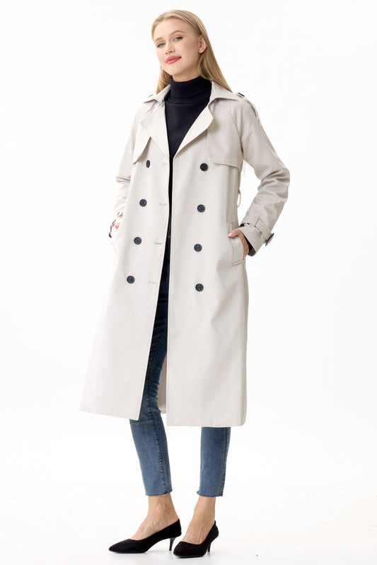 Yes—this female trench coat transitions seamlessly from everyday wear to business casual and even formal events. The sharp structure and refined tailoring make it a power piece in any minimalist wardrobe.