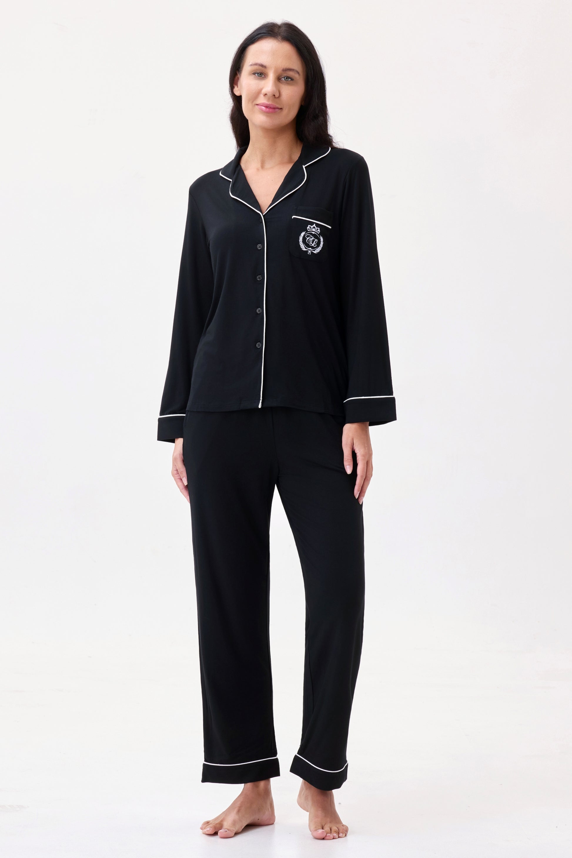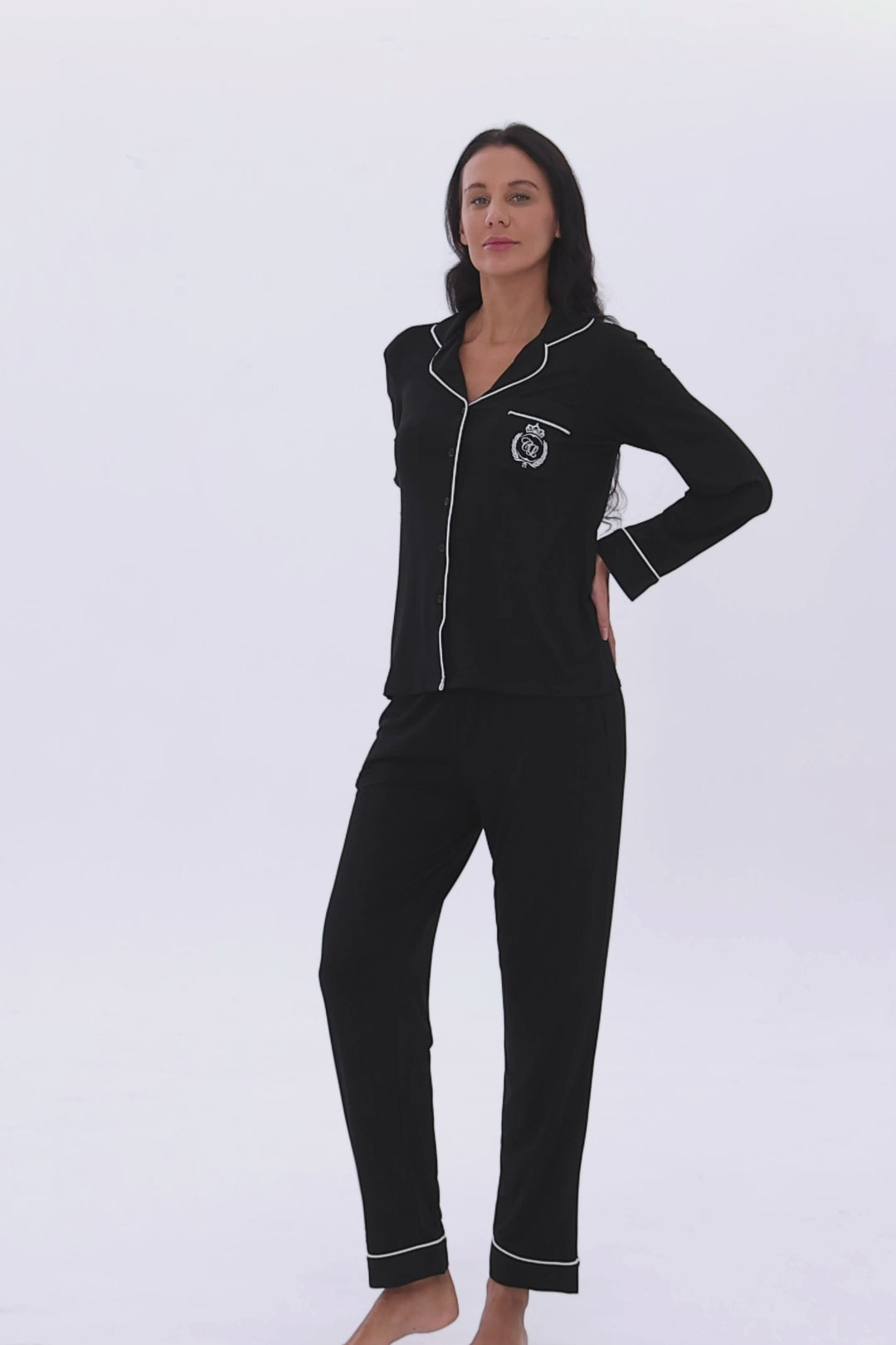 Royal Black Bamboo Silk™ Pajama Set – Long Sleeve & Pants