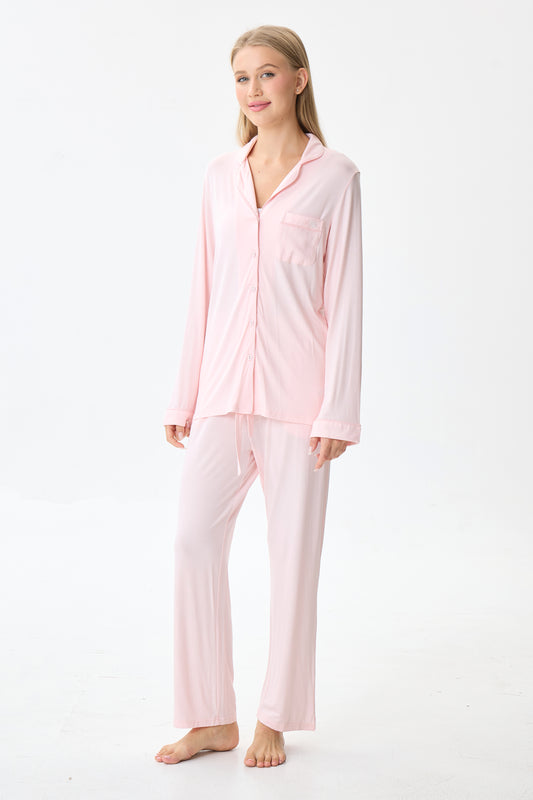 Baby Pink Luxe Modal Silk™ Pajama Set – Long Sleeve & Pants