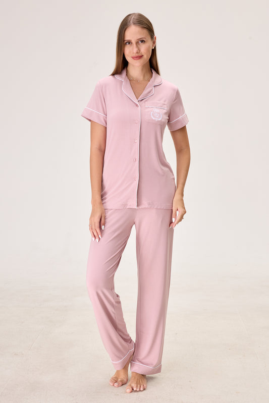 Berry Mauve Bamboo Silk™ Pajama Set – Short Sleeve & Pants