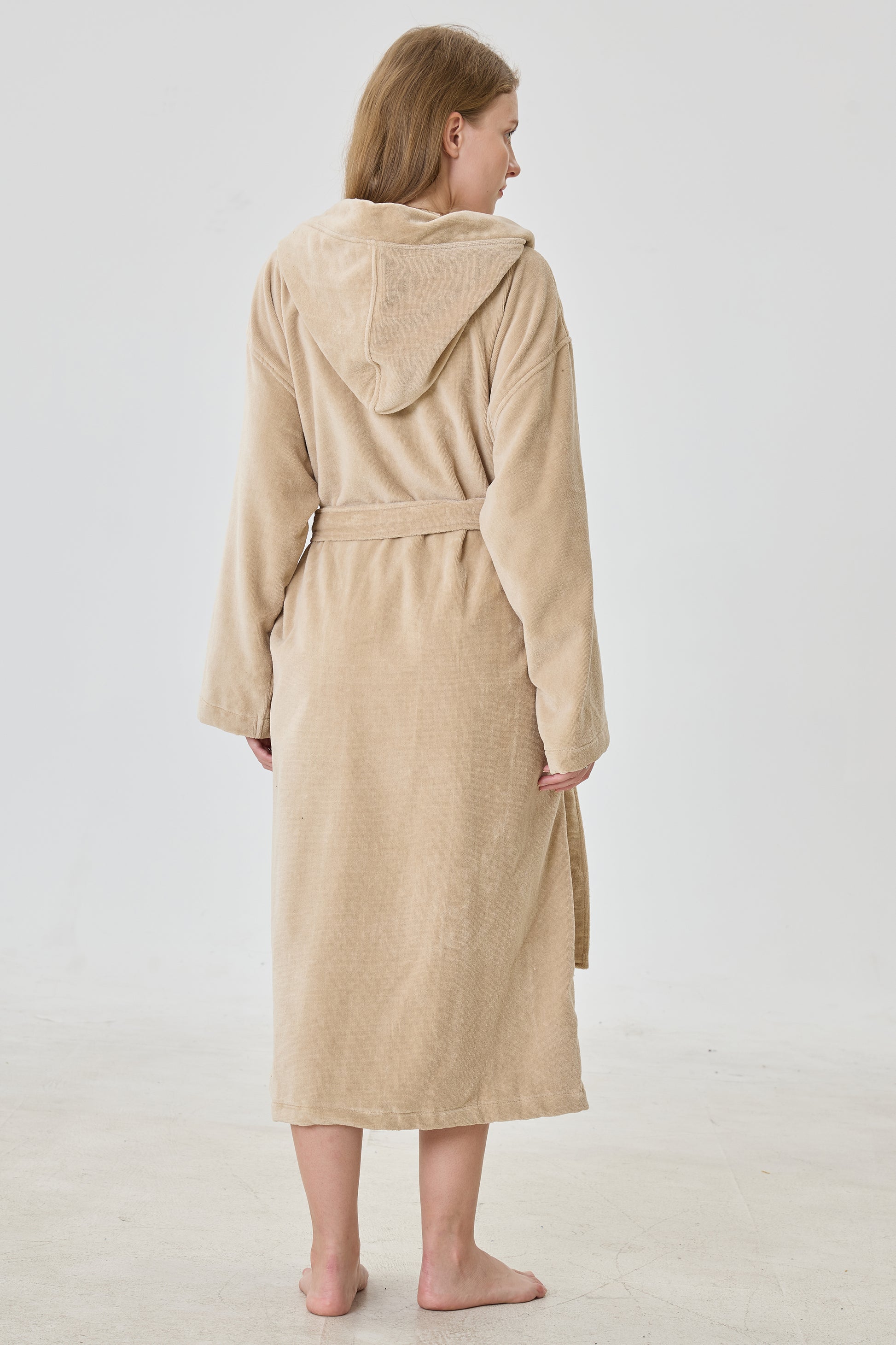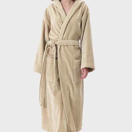 Cashmere Beige Hooded Turkish Cotton Spa Bathrobe