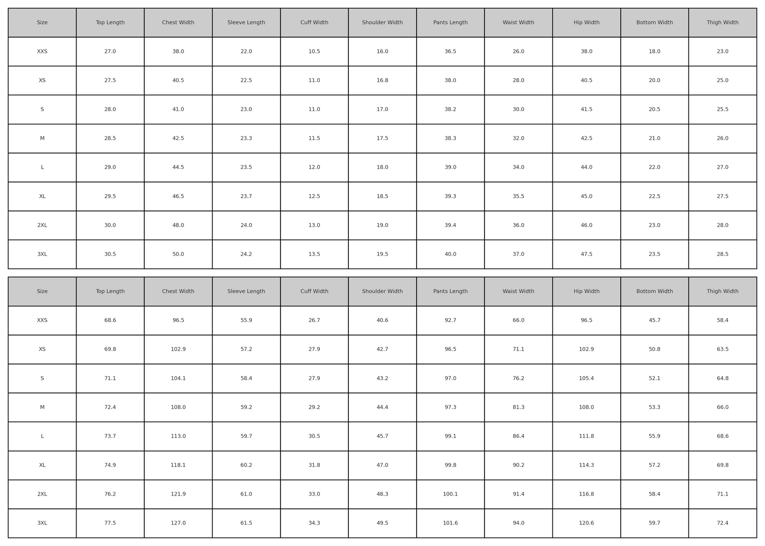 Sizing Chart