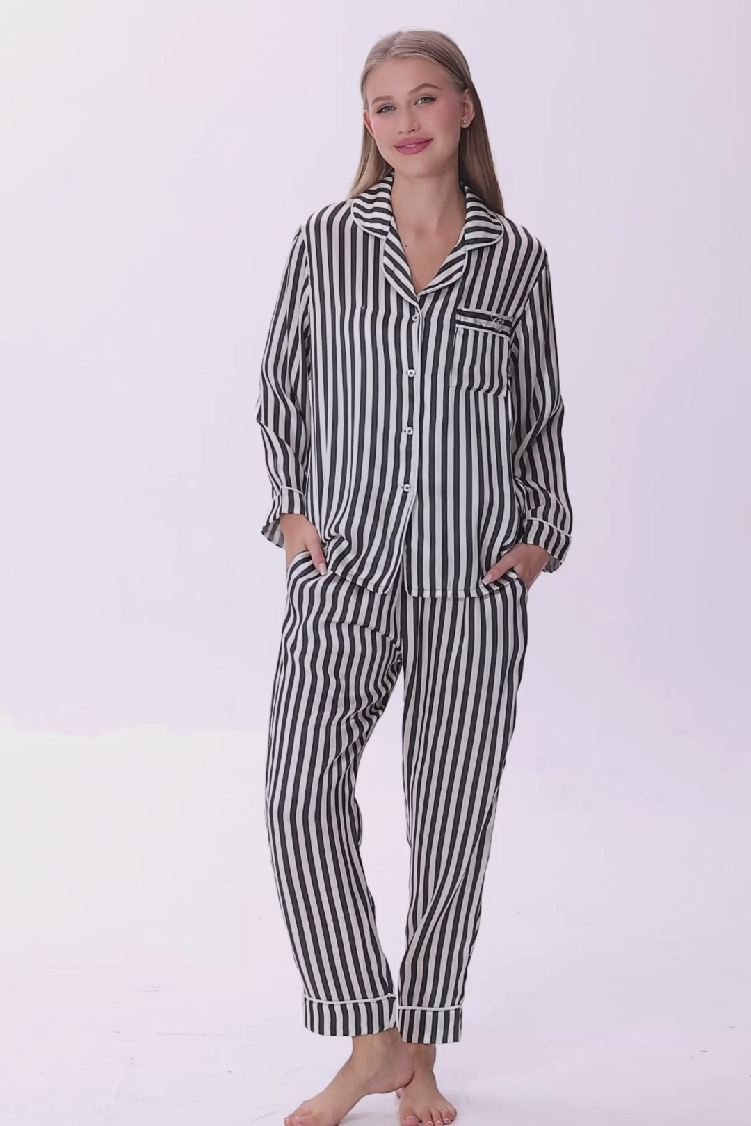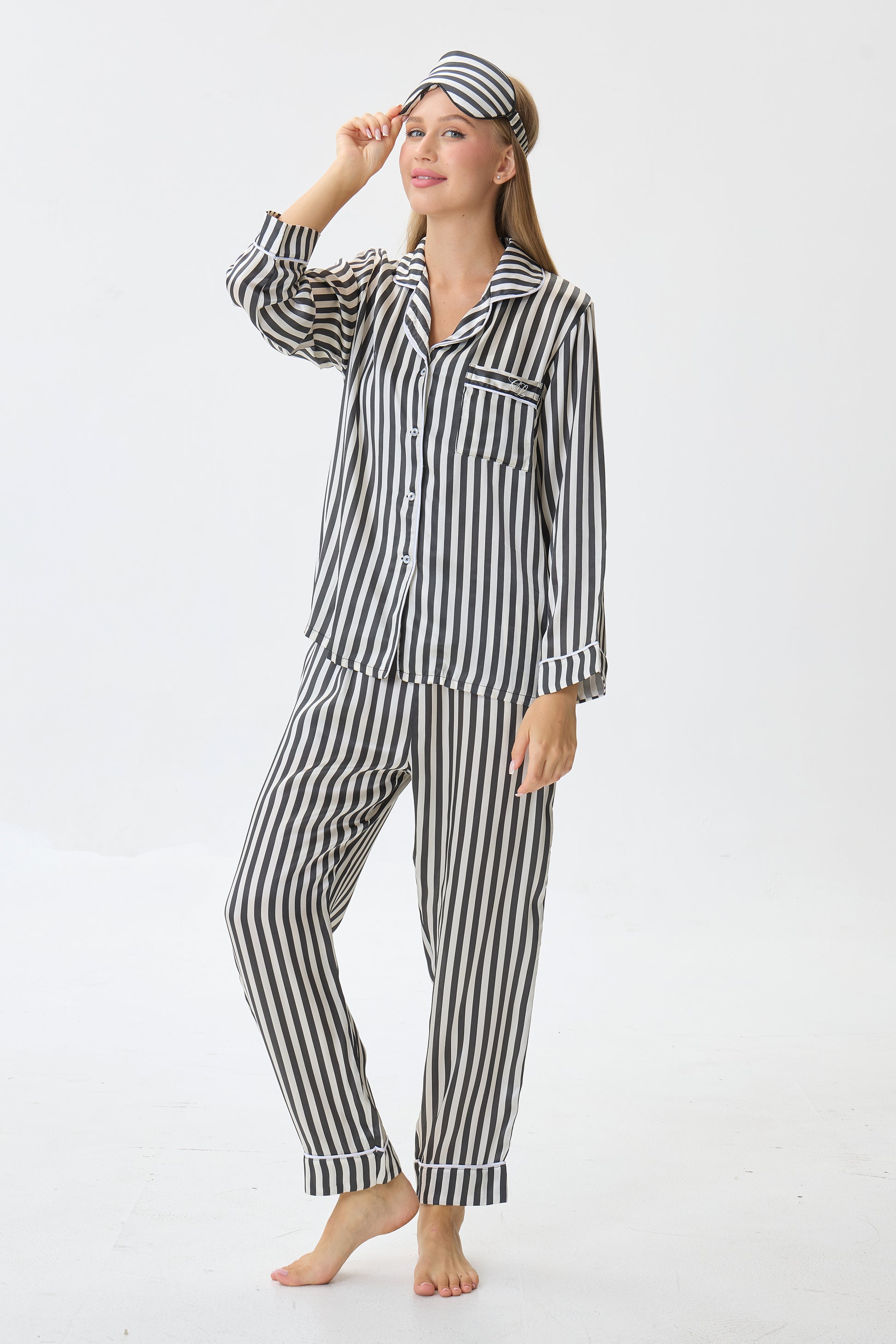 Pinstripe Emery™ Mulberry Silk Pajama Set + Eye Mask + Scrunchie
