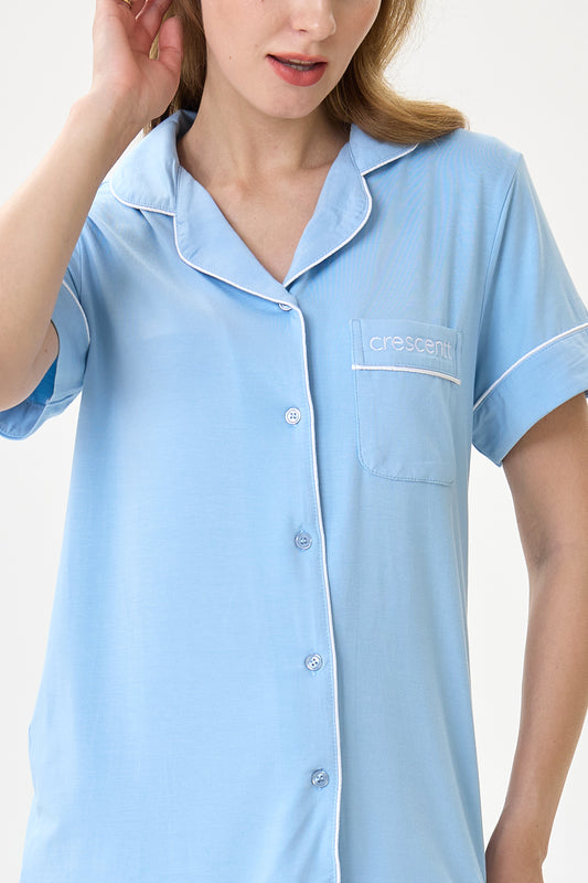 Angel Blue Luxe Modal Silk™ Pajama Set – Short Sleeve & Pants