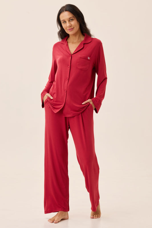 Crimson Luxe Modal Silk™ Pajama Set – Long Sleeve & Pants